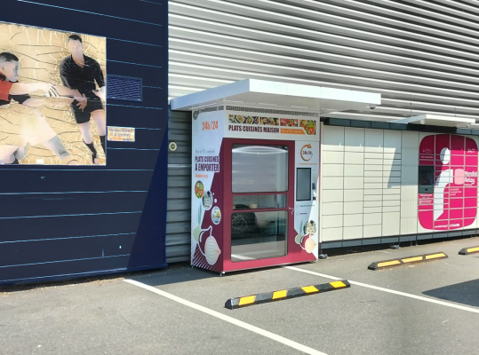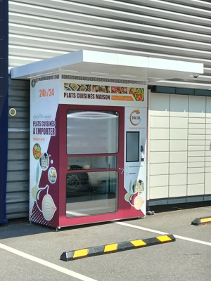 Ce distributeur automatique installé pour un traiteur allie praticité et fraîcheur des produits. Le vrai plus de cette machine est que la livraison se fait à hauteur d'homme, rendant la machine adaptée aux personnes à mobilité réduite (PMR).