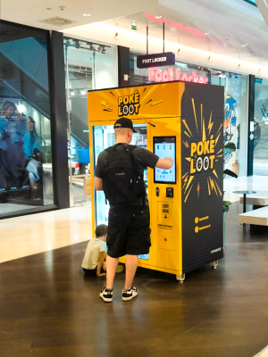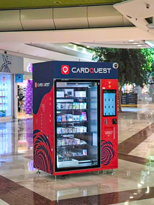 Installé au cœur d'un centre commercial à Marseille, ce distributeur automatique propose des cartes à collectionner. Sa vitrine extra large séduit immédiatement les visiteurs. Une machine qui transforme l'achat en une expérience amusante.
